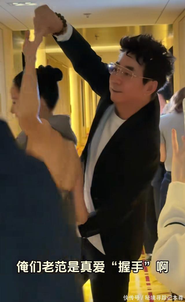 见到本剧组的老搭档,范明更是放得开,看见倪虹洁,拎起她的手就让倪虹洁转起了圈圈,给他拍视频的助理都忍不住感叹:俺们老范是真爱握手啊。